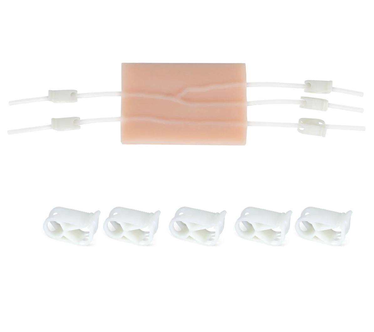 Тренажер представляет собой реалистичный участок кожи с видимыми венами, которые можно пропальпировать.
