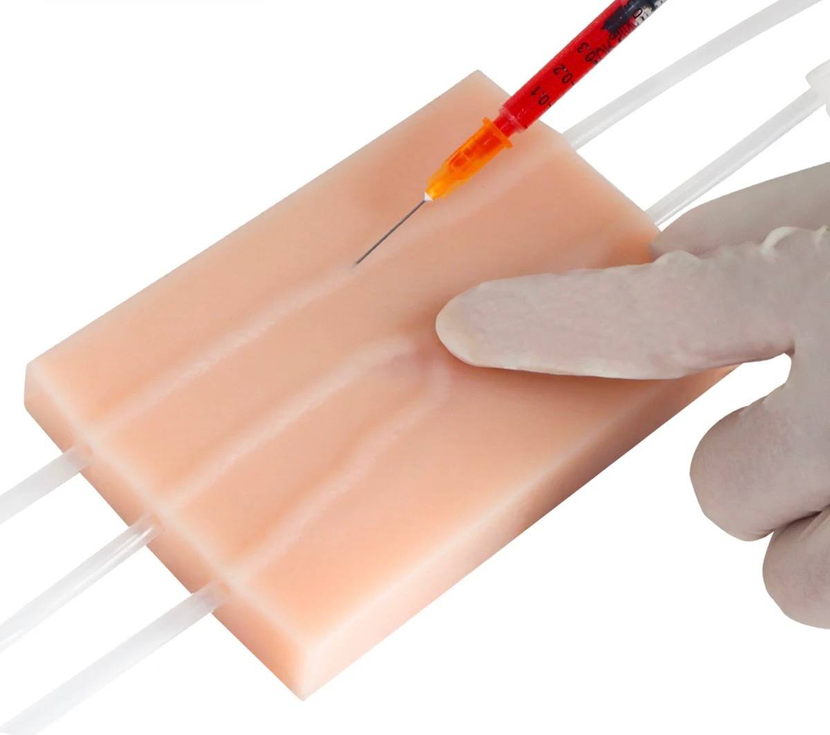 При попадании иглы в вену ощущается отчетливый провал, что позволяет отработать максимально реалистично навык забора крови или вливания инфузий.