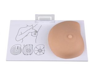 Представляет собой модель молочной железы с двумя уплотнениями, которые имитируют два вида новообразований: доброкачественную и злокачественную опухоли. Модель помещена в короб на котором отображено анатомическое строение молочной железы и рекомендации по диагностике опухолей.